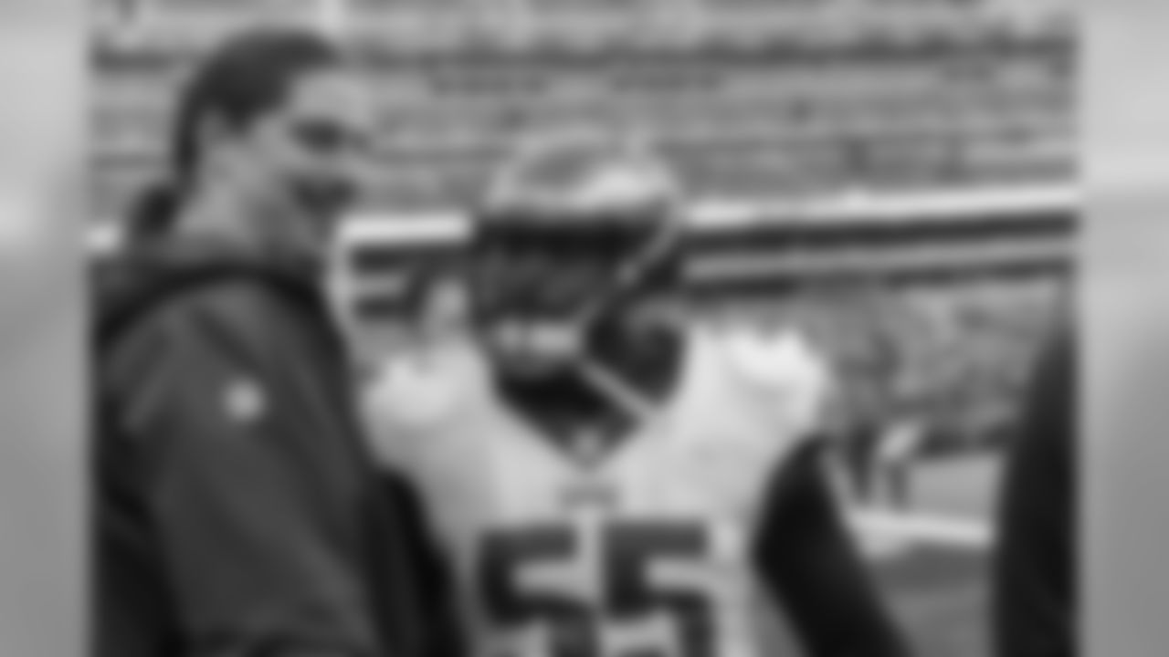 T Dennis Kelly with LB Brandon Graham before the game